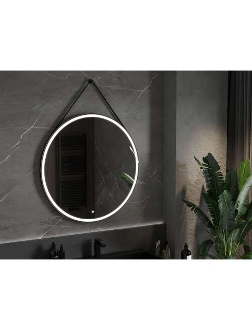 Mexen Reni lustro łazienkowe podświetlane, okrągłe 100 cm, LED 6000K, antypara, czarna rama - 9812-100-100-611-70