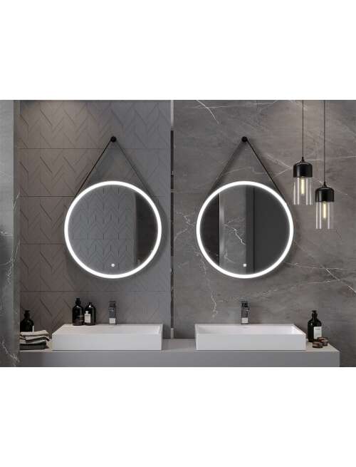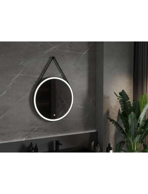 Mexen Reni lustro łazienkowe podświetlane, okrągłe 70 cm, LED 6000K, antypara, czarna rama - 9812-070-070-611-70