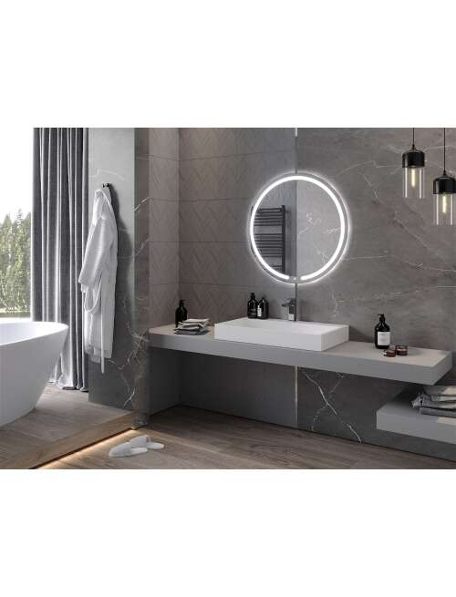 Dane techniczne: Rozmiar: 80 x 80 cm Głębokość: 25 mm Grubość szkła: 4 mm Włącznik podświetlania: Dotykowy Barwa LED: Zimna - 6000K Liczba diod LED: 60/mb Zużycie energii: 4,8 W/mb Napięcie wejściowe: 230 V Klasa energetyczna: F (dawniej A+) Stopień ochrony: IP44 & certyfikat CE Lustro posiada mate grzewczą, która po włączeniu zapobiega powstawaniu pary Zasilanie przygotowane do podłączania pod instalację elektryczną w ścianie |