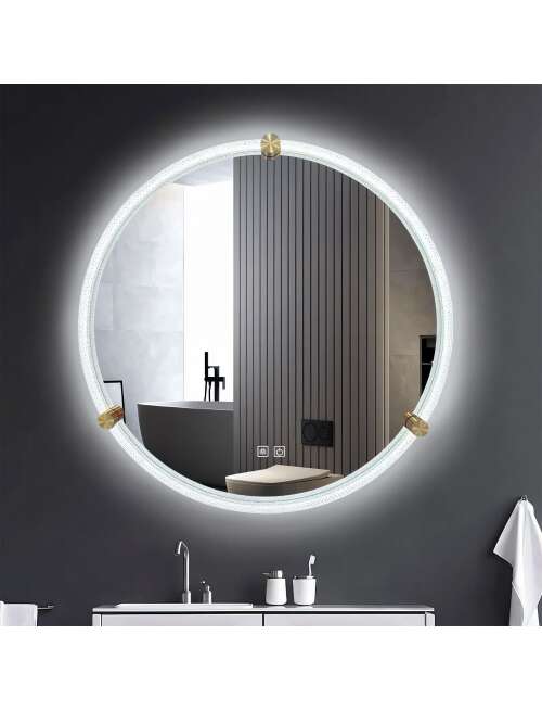 To lustro led z dekoracyjną ramą akrylową łączy w sobie styl i funkcjonalność, stając się wyjątkowym dodatkiem do każdego nowoczesnego wnętrza. Subtelny, kryształowy efekt ramy pięknie załamuje światło, tworząc delikatne refleksy, które dodają przestrzeni blasku i klasy.