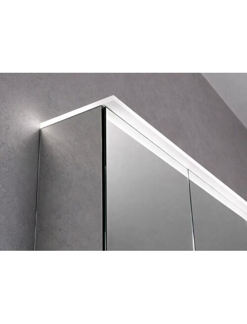 Pakabinama veidrodinė spintelė su LED apšvietimu Matmenys: plotis - 60 cm, aukštis - 70 cm, gylis - 15 cm Spintelė su dvejomis dvipusėmis veidrodinėmis durelėmis, viduje yra 2 mobilios stiklinės lentynėlės. Durelės su švelnaus uždarymo mechanizmu. Spintelės korpuso šonai - veidrodiniai, vidus - tamsiai pilkos spalvos. Medžiaga - didelio tankio trijų sluoksnių medienos drožlių plokštė. Su integruotu LED apšvietimu aptinėje ir viršutinėje dalyje (stogelyje) . Judesiu valdomas sensorinis jungiklis. Šviesos spalvinė temperatūra: 4200K Integruoto LED apšvietimo tarnavimo laikas: 6000 val. Spintelės viduje yra elektros lizdas, USB jungtis. Įvadinė įtampa: 220-240 V, išėjimo įtampa: 12 V, tinklo dažnis: 50 Hz Saugumo klasė: IP44 Energijos klasė: A++ Gamintojas: Ifö, Švedija |