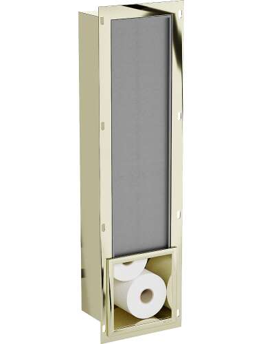 Dane techniczne: Materiał: Stal nierdzewna Wykończenie: Złoty Szerokość: 19,5 cm Wysokość: 72 cm Odległość od ściany: 12,1 cm Do zabudowy w ścianie - nie zabiera miejsca |