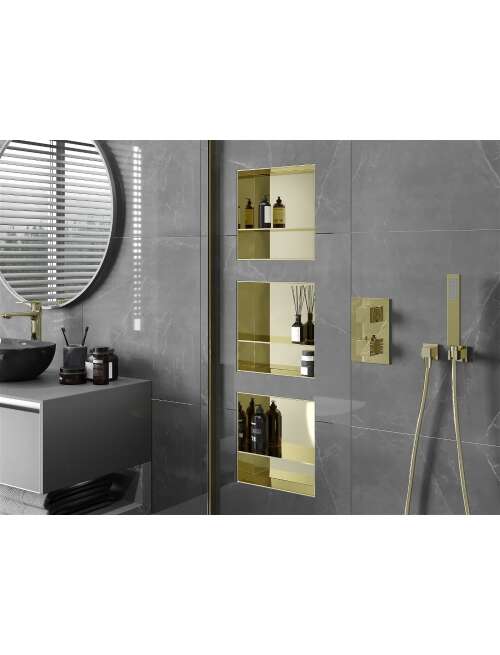 Mexen X-Wall-NR półka wnękowa bez kołnierza z półką 30 x 30 cm, złota - 1951303010S
