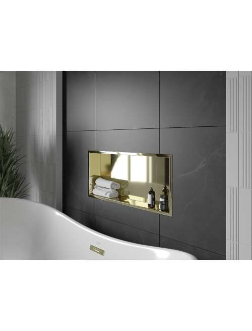 Specyfikacja produktu:Materiał: Stal nierdzewna AISI 304 Szerokość: 75 x 30 cm Głębokość montażu: 10 cm Wykończenie: Złoty Kołnierz maskujący: Tak Do zabudowy w ścianie Uniwersalne zastosowanie Odporność na matowienie i korozję |