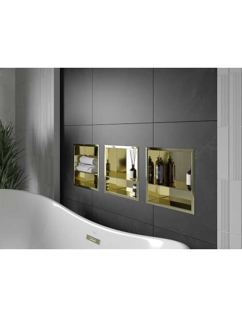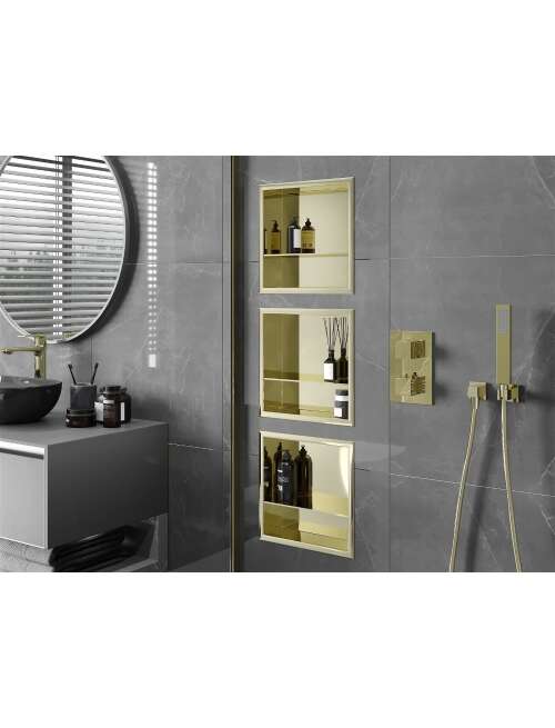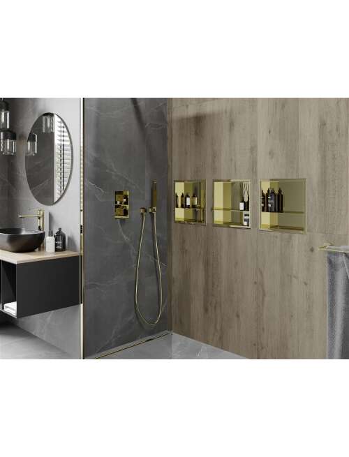 Mexen X-Wall-R półka wnękowa z kołnierzem i półką 30 x 30 cm, złota - 1950303010S