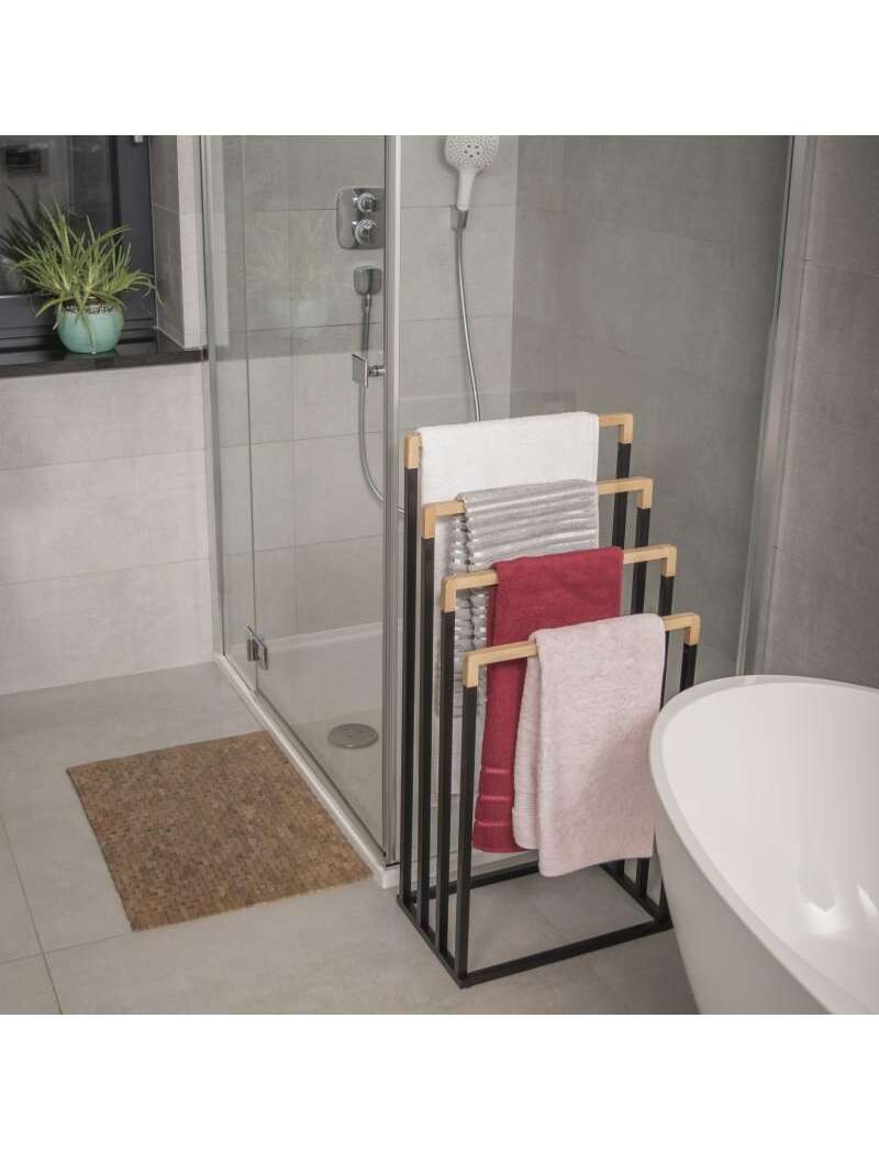 KONA 4 вешалка для полотенец ЧЕРНЫЙОтдельностоящая вешалка для полотенец на четырех плечах. Изготовлен из стали, покрыт черной матовой краской. Верхняя часть изготовлена из натурального влагостойкого бамбукового дерева.