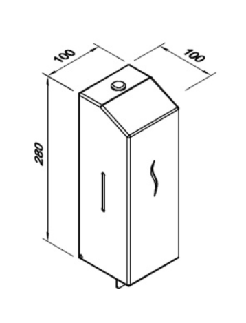 Размеры: высота 280 мм, ширина 100 мм, глубина 100 мм.