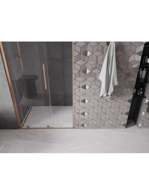 Specyfikacja produktu:Rozmiar: 100x200 cm Montaż: Uniwersalny Wejście: Rozsuwane Kolor szkła: Transparentne Wykończenie: Miedź szczotkowana Rodzaj szkła: Hartowane Grubość szkła: 8 mm Profil: Aluminiowy Wspornik: Stal nierdzewna Długość max. wspornika: 120 cm Możliwość przycięcia wspornika Powłoka ułatwiająca czyszczenie Niwelacja nierówności ściany Regulacja szerokości Możliwość montażu na brodziku lub płytkach Uchwyt ze stali nierdzewnej Komplet uszczelek odprowadzających wodę Aluminiowy próg uszczelniający drzwi |
