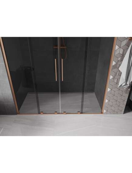 Specyfikacja produktu:Rozmiar: 180x200 cm Montaż: Uniwersalny Wejście: Rozsuwane Kolor szkła: Grafit Rodzaj szkła: Hartowane Grubość szkła: 8 mm Profil: Aluminiowy Wykończenie: Miedź szczotkowana Powłoka ułatwiająca czyszczenie Niwelacja nierówności ściany Regulacja szerokości Możliwość montażu na brodziku lub płytkach Uchwyt ze stali nierdzewnej Komplet uszczelek odprowadzających wodę Aluminiowy próg uszczelniający drzwi |