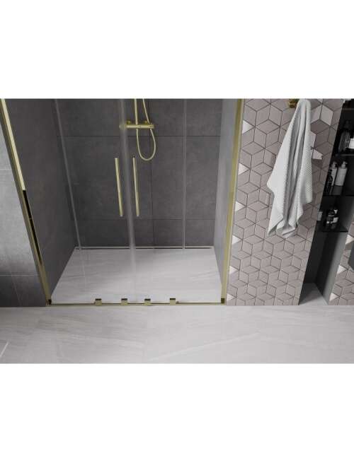 Specyfikacja produktu:Rozmiar: 160x200 cm Montaż: Uniwersalny Wejście: Rozsuwane Kolor szkła: Transparentne Rodzaj szkła: Hartowane Grubość szkła: 8 mm Profil: Aluminiowy Wykończenie: Złoty Stabilizator kątowy L: Stal nierdzewna Powłoka ułatwiająca czyszczenie Niwelacja nierówności ściany Regulacja szerokości Możliwość montażu na brodziku lub płytkach Uchwyt ze stali nierdzewnej Komplet uszczelek odprowadzających wodę Aluminiowy próg uszczelniający drzwi |