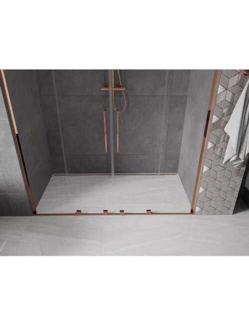 Specyfikacja produktu:Rozmiar: 170x200 cm Montaż: Uniwersalny Wejście: Rozsuwane Kolor szkła: Transparentne Rodzaj szkła: Hartowane Grubość szkła: 8 mm Profil: Aluminiowy Wykończenie: Różowe złoto Stabilizator kątowy L: Stal nierdzewna Powłoka ułatwiająca czyszczenie Niwelacja nierówności ściany Regulacja szerokości Możliwość montażu na brodziku lub płytkach Uchwyt ze stali nierdzewnej Komplet uszczelek odprowadzających wodę Aluminiowy próg uszczelniający drzwi |