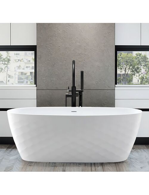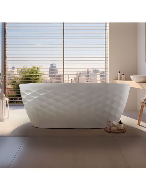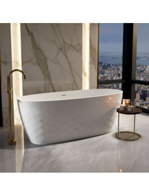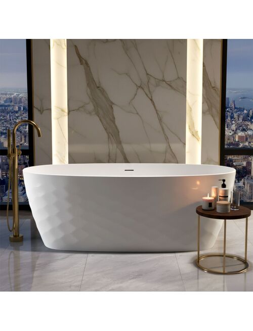 | Wanna wolnostojąca Gaja to połączenie nowoczesnego stylu i ponadczasowej elegancji. Jej subtelna, owalna forma oraz charakterystyczny, diamentowy wzór na zewnętrznej powierzchni tworzą niepowtarzalny efekt wizualny, który przyciąga wzrok i nadaje wnętrzu luksusowego charakteru. Model ten doskonale komponuje się z aranżacjami w stylu modern, glamour oraz klasycznym, stając się centralnym punktem łazienki.