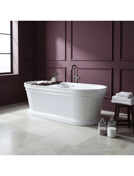 | Stwórz w swojej łazience strefę luksusowego relaksu z wanną wolnostojącą Rea Olivia. Ten model o długości 170 cm łączy w sobie ergonomię z wyrafinowanym wzornictwem inspirowanym stylem retro. Wykonana z wysokiej jakości akrylu, stanowi centralny punkt aranżacji, zachęcając do długich kąpieli.Klasyczna elegancja – wanna wyróżnia się dekoracyjnym profilowaniem. Ozdobny cokół u podstawy oraz szeroki, wywijany rant nadają jej charakteru w stylu glamour i classic, odróżniając ją od prostych, minimalistycznych brył.Właściwości termiczne – zastosowany akryl sanitarny jest ciepły w dotyku i doskonale izoluje ciepło, dzięki czemu woda w wannie stygnie znacznie wolniej, co pozwala na dłuższy relaks.Kompletny zestaw – produkt dostarczany jest wraz z dedykowanym syfonem oraz korkiem klik-klak w kolorze białym. Jednolita kolorystyka korka sprawia, że zlewa się on z dnem wanny, tworząc spójną estetycznie całość.Komfort i przestrzeń – długość 170 cm oraz centralnie umieszczony odpływ zapewniają wygodę użytkowania. Symetryczna budowa pozwala na swobodne oparcie się po obu stronach wanny.Bezpieczeństwo – model wyposażony jest w dyskretny otwór przelewowy, który chroni łazienkę przed przypadkowym zalaniem podczas napełniania misy.Wanna Rea Olivia 170 to propozycja dla miłośników ponadczasowego piękna. Jej profilowana forma i śnieżnobiały połysk sprawiają, że doskonale wpisuje się w aranżacje tradycyjne, retro oraz nowojorskie, dodając wnętrzu wytworności. |