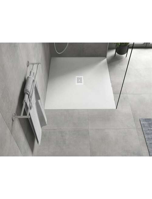 Dane techniczne: Rozmiar: 120x100x2,6 cm Kolor: Biały Typ: Prostokątny, Ultrapłaski Montaż: W posadzce lub na posadzce Materiał: SMC - tworzywo sztuczne Struktura kamienia Możliwość przycięcia brodzika Trwały produkt, który nie ulegnie deformacji Maksymalna stabilność dzięki dobrej odporności na uderzenia W komplecie syfon czyszczony od góry Średnica odpływu: 90 mm Wykończenie maskownicy: Białe |