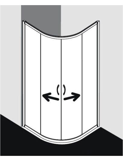 Dušo kabiną sudaro dvejos slankios durys ir dvi stabilios sienelės. Stabilios sienelės plotis: 23,4 cm. Įėjimo į kabiną plotis: 44,7 cm