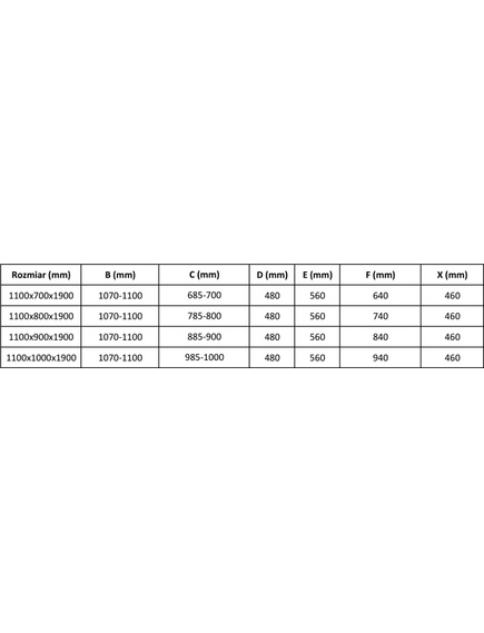 | Технические данные: Размер: 110x70 см (дверь 110 см. Стены 70 см) Высота ‡: 190 см Установка: Универсальная Вход: Раздвижная дверь Цвет стекла: Прозрачное/Полосы Отделка соединения: Черный < Тип стекла: Закаленное Толщина стекла: 5 мм Профиль: Алюминий Покрытие для легкой очистки: Да Уменьшение неровностей стен: ДаРегулировка ширины: Да Можно установить на душевой поддон или плитку : Да Металлическая ручка Дренажные уплотнения в комплекте Алюминиевый уплотнитель дверцы |