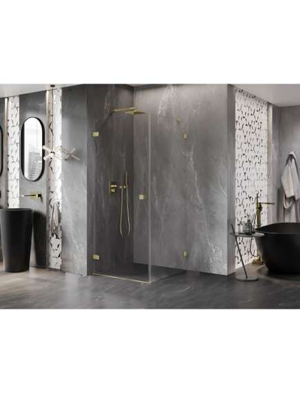 Mexen Lunar-B kabina prysznicowa uchylna lewa 80 x 80 cm, transparent, złota szczotkowana - 832-080-080-55-00-L