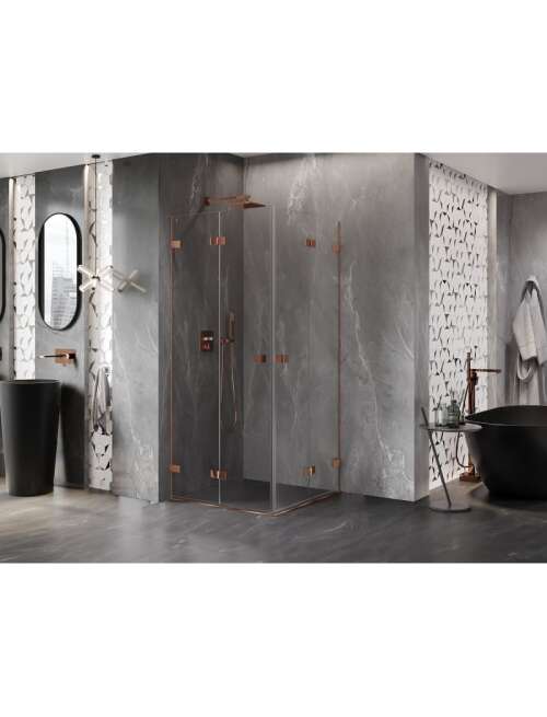 Specyfikacja produktu:Rozmiar: 100x100 cm Wysokość: 200 cm Strona montażu: Uniwersalna Wejście: Drzwi składane Kolor szkła: Transparentne Wykończenie: Różowe złoto Profil: Aluminiowy Rodzaj szkła: Hartowane Grubość szkła: 6 mm Powłoka ułatwiająca czyszczenie Możliwa regulacja szerokości Dwa systemy mocowania: - Z profilem, który umożliwia niwelacje nierówności ściany - Bez profilu w przypadku idealnie prostych ścian Możliwość montażu na brodziku lub płytkach Mosiężne klamry i zawiasy zlicowane z taflą szkła Listwa magnetyczna oraz uszczelki elastomerowe odprowadzające wodę Aluminiowy próg uszczelniający drzwi |