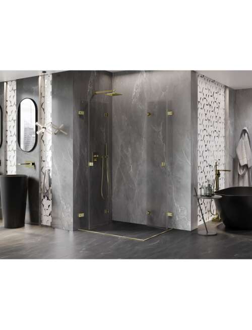 Specyfikacja produktu:Rozmiar: 85x70 cm Wysokość: 200 cm Strona montażu: Uniwersalna Wejście: Drzwi składane Kolor szkła: Transparentne Wykończenie: Złoty szczotkowany Profil: Aluminiowy Rodzaj szkła: Hartowane Grubość szkła: 6 mm Powłoka ułatwiająca czyszczenie Możliwa regulacja szerokości Dwa systemy mocowania: - Z profilem, który umożliwia niwelacje nierówności ściany - Bez profilu w przypadku idealnie prostych ścian Możliwość montażu na brodziku lub płytkach Mosiężne klamry i zawiasy zlicowane z taflą szkła Listwa magnetyczna oraz uszczelki elastomerowe odprowadzające wodę Aluminiowy próg uszczelniający drzwi |