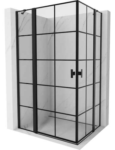 Specyfikacja produktu:Rozmiar: 115x100 cm (drzwi lewe 115 cm, drzwi prawe 100 cm) Wysokość: 200 cm Strona montażu: Uniwersalna Wejście: Drzwi uchylne Kolor szkła: Czarna kratka Wykończenie: Czarny Profil: Aluminiowy Wspornik: Stal nierdzewna Rodzaj szkła: Hartowane Grubość szkła: 6 mm Powłoka ułatwiająca czyszczenie Możliwa regulacja szerokości Możliwość montażu na brodziku lub płytkach Mechanizm unoszenia i opuszczania drzwi Listwa magnetyczna oraz uszczelki elastomerowe odprowadzające wodę Aluminiowy próg uszczelniający drzwi |