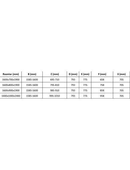 | Технические характеристики: Размер: 160x70 смВ (дверь 160 см, стена 70 см) Высота ‡: 190 см < / p> Установка: Универсальная Вход: Раздвижная дверь Цвет стекла: Прозрачное - Прозрачное Отделка соединения: хром Тип стекла: Закаленное Толщина стекла: В 8 мм Профиль: Алюминий Покрытие для легкой очистки: Да Уменьшить неровности стены: Да Регулировка ширины: Да Может быть установлен на бассейн или плитку: Да Двойные ролики Premium Металл ручка p>Комплект уплотнений для слива Алюминиевый уплотнитель дверцы |