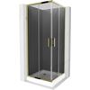 Квадратная душевая кабина Mexen Rio 80 x 80 см, прозрачная, золото - 860-080-080-50-00, Размер: 80x80, Цвет: Золото, Тип стекла: Прозрачное стекло, Комплектация: Balts paliktnis 15cm + hromēts sifons