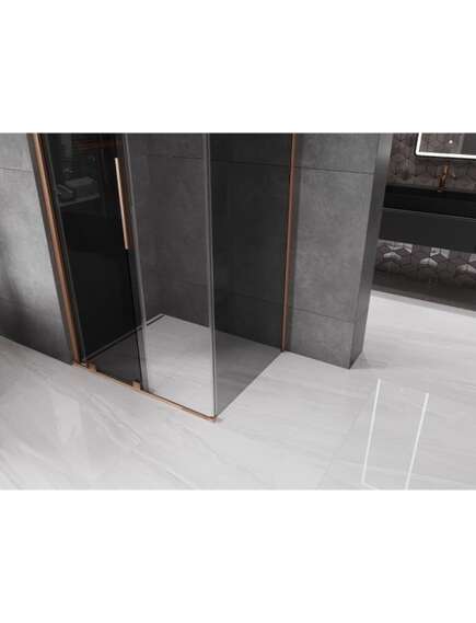 Specyfikacja produktu:Rozmiar: 100x110 cm (drzwi 100 cm, ścianka 110 cm) Wysokość: 200 cm Montaż: Uniwersalny Wejście: Drzwi rozsuwane Kolor szkła: Grafit Wykończenie: Miedź szczotkowana Rodzaj szkła: Hartowane Grubość szkła: 8 mm Profil: Aluminiowy Powłoka ułatwiająca czyszczenie Niwelacja nierówności ściany Regulacja szerokości Możliwość montażu na brodziku lub płytkach Najwyższa jakość pojedynczych rolek Uchwyt ze stali nierdzewnej Komplet uszczelek odprowadzających wodę Aluminiowy próg uszczelniający drzwi |
