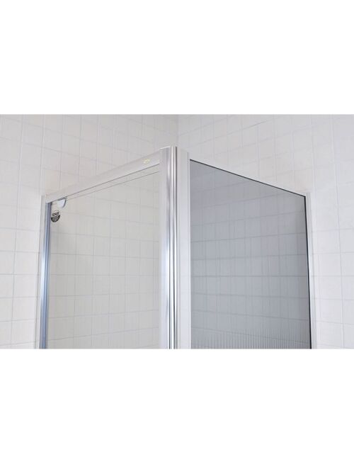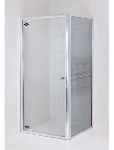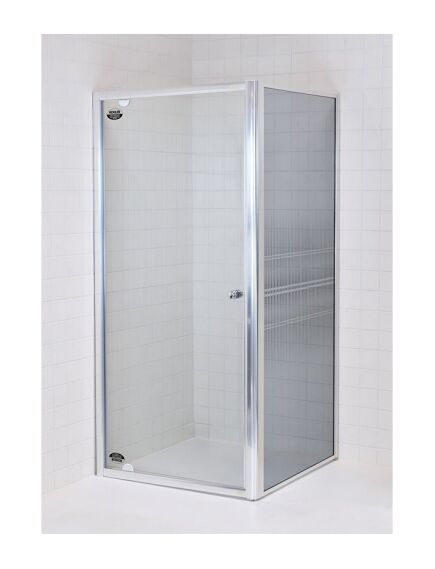 Stačiakampė dvisienė dušo kabina be padėklo Dušo kabiną sudaro vienerios varstomos durys ir stabili sienelė. Matmenys: 90 x 90 x 185 cm Chromo spalvos aliuminio profiliai. Pločio reguliavimo diapazonas montuojant: 86-90 cm (durys)/ 87-91 cm (sienelė). Durys varstomos tik į išorę. Pivot tipo durys sukasi ne ant tradicinių šoninių vyrių, o ant specialių ašinių vyrių, įmontuotų į durų rėmą. Grūdintas skaidrus, 5 mm storio stiklas, padengtas antikalkine danga (durys); grūdintas pilkai tonuotas, 4 mm storio stiklas, dekoruotas juodos spalvos ornamentu (sienelė). Sandarumą užtikrina magnetinės silikoninės tarpinės. Dušo kabina montuojama tiesiog ant grindų, kuriose įrengtas nutekamasis latakas arba statoma ant dušo padėklo. Montavimo būdas - universalus (kairinis/dešininis). Gamintojas: SANIKU, Vokietija |