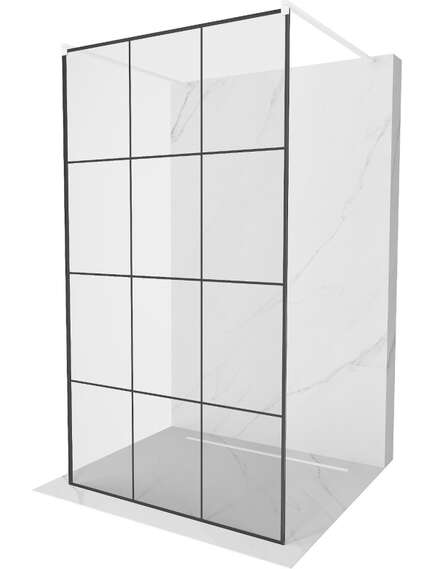 Отдельностоящая душевая перегородка Mexen Kyoto 100 x 200 см, прозрачная/черная с узором 8 мм, белая - 800-100-002-20-77