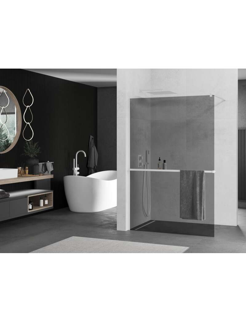 Specyfikacja produktu:Szerokość: 100 cm Wysokość: 200 cm Montaż: Uniwersalny, prawa lub lewa Kolor szkła: Grafit Wykończenie: Biały Rodzaj szkła: Hartowane Grubość szkła: 8 mm Profil: Aluminiowy Wspornik: Stal nierdzewna Długość max. wspornika: 150 cm Materia półki: Aluminium Szerokość: 12,9 cm Wysokość: 3,2 cm Długość max. półki: 140 cm Możliwość przycięcia wspornika oraz półki Powłoka ułatwiająca czyszczenie Niwelacja nierówności ściany Możliwość montażu na brodziku lub płytkach |