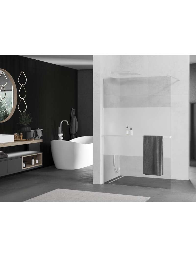 Specyfikacja produktu:Szerokość: 100 cm Wysokość: 200 cm Montaż: Uniwersalny, prawa lub lewa Kolor szkła: Transparent/Szron Wykończenie: Biały Rodzaj szkła: Hartowane Grubość szkła: 8 mm Profil: Aluminiowy Wspornik: Stal nierdzewna Długość max. wspornika: 150 cm Materia półki: Aluminium Szerokość: 12,9 cm Wysokość: 3,2 cm Długość max. półki: 140 cm Możliwość przycięcia wspornika oraz półki Powłoka ułatwiająca czyszczenie Niwelacja nierówności ściany Możliwość montażu na brodziku lub płytkach |
