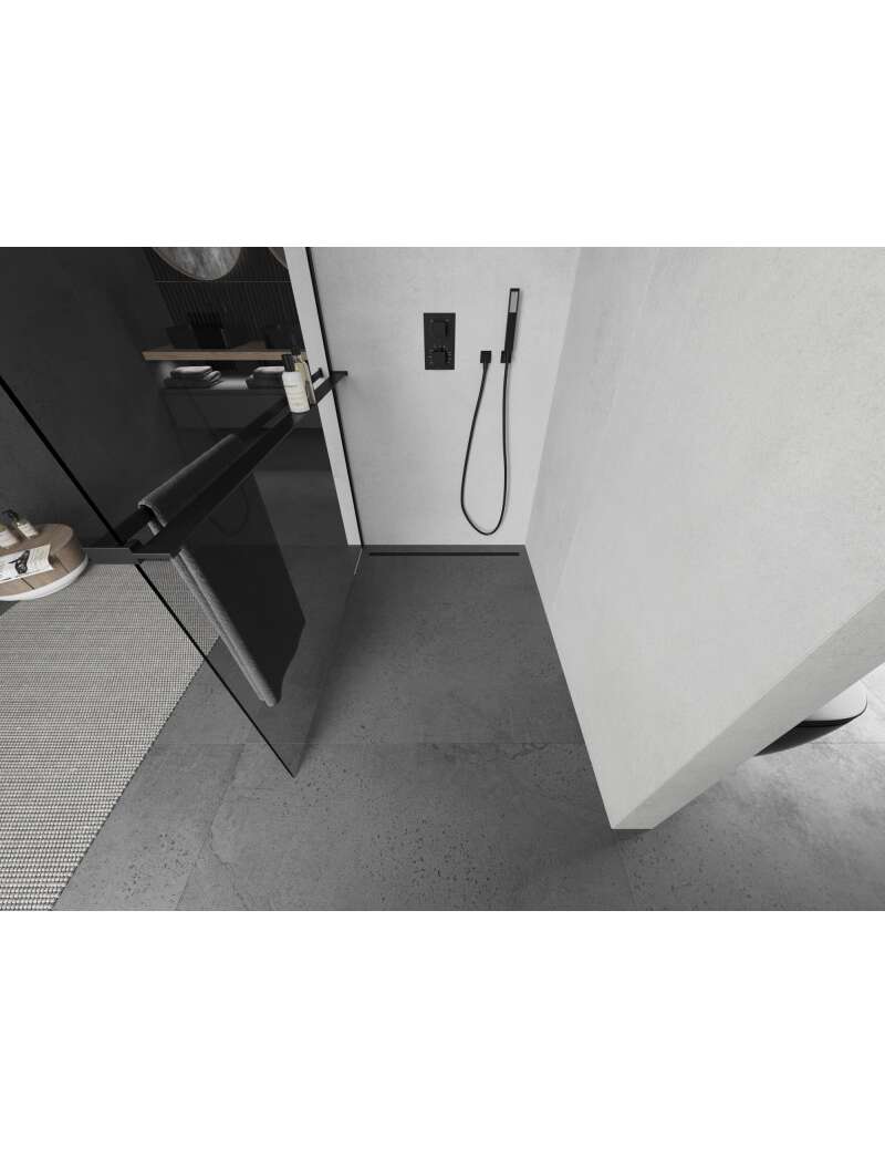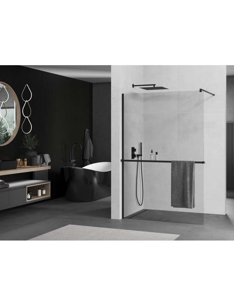 Mexen Kioto+ ścianka prysznicowa z półką Walk-in 75 x 200 cm, transparent, czarna - 800-075-121-70-00