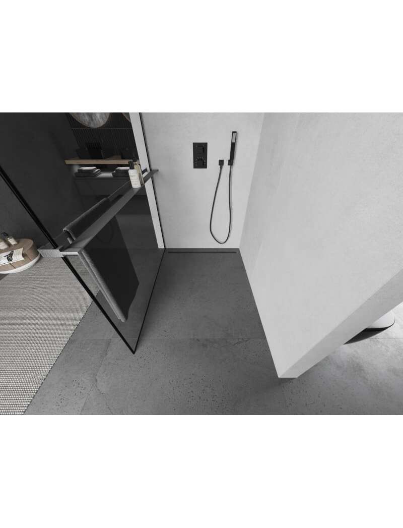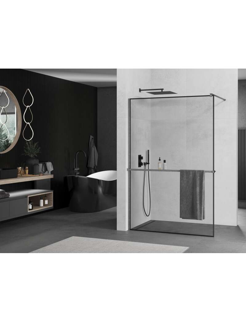 Mexen Kioto+ ścianka prysznicowa z półką Walk-in 90 x 200 cm, czarny wzór, gun gray szczotkowany - 800-090-121-66-70
