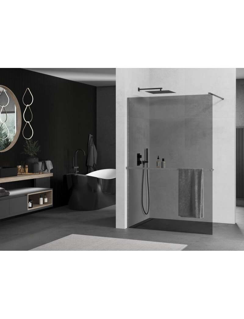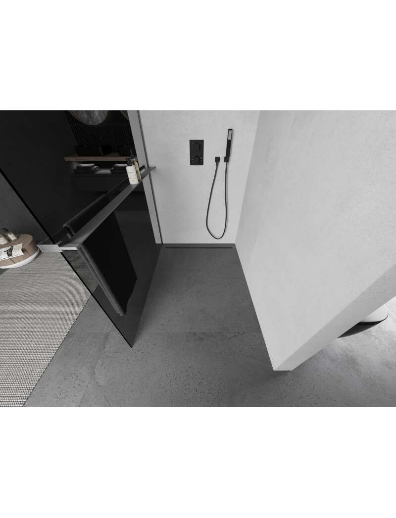 Mexen Kioto+ ścianka prysznicowa z półką Walk-in 90 x 200 cm, grafit, gun gray szczotkowany - 800-090-121-66-40
