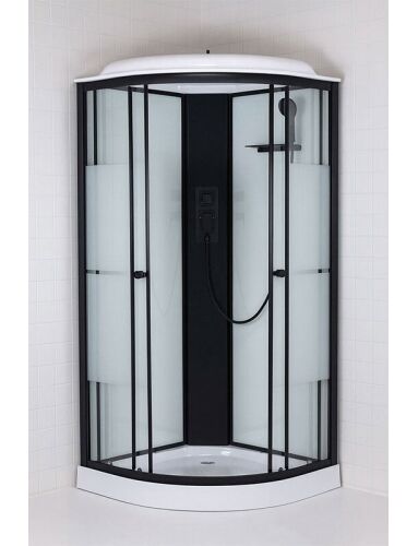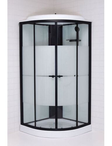 Pusapvalė ketursienė dušo kabina su žemu akrilo padėklu