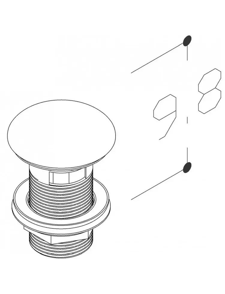 Sifona izplūde Kame 1 1/4 Pop-Up ar pārplūdi, pelēka keramika, ACTOP-MG-HOLE