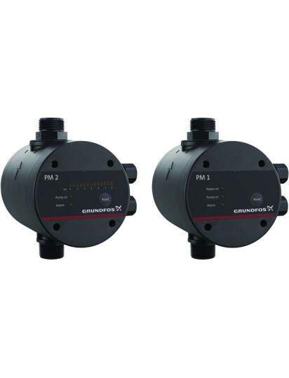 | Grundfos Pressure Manager ir inteliģenta hidrotehniskā ierīce, kas vada sūkņa darbību atbilstoši patēriņam mājas ūdensapgādē un spiediena paaugstināšanas sistēmās. PM1 ir piemērots pielietojumam, kur ir nepieciešama sūkņa palaišana/apturēšana atbilstoši patēriņam. Šis risinājums nodrošina vispārīgu pielāgojamību, piedāvājot sūkņa palaišanu pie 1.5 vai 2.2 bāru spiediena. PM1 palaiž sūkni, kad ir sasniegts palaišanas spiediens, un darbina to tik ilgi, kamēr pastāv plūsma. PM1 nodrošina aizsardzību pret darbību bez šķidruma un ciklu signalizāciju lielākai drošībai. Turklāt šis aprīkojums var lepoties ar Grundfos kvalitāti, kas nozīmē augstu pielāgojamības līmeni, robustu elektroniku un iekārtas ilgu kalpošanas mūžu. | ||||||||||||||||||||||||||||||||||||||||||||