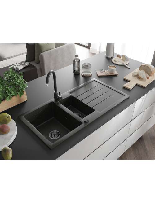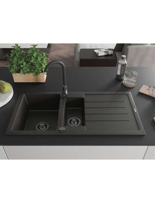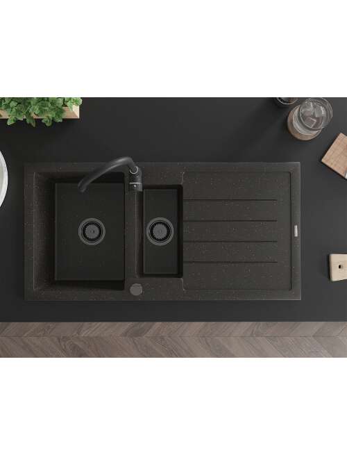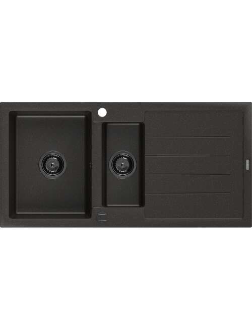Mexen Andres zlewozmywak granitowy 1,5-komorowy z ociekaczem 1000 x 500 mm czarny/złoty metalik, syfon czarny - 6515101510-75-B