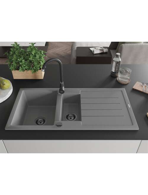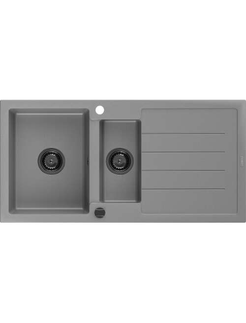 Mexen Andres zlewozmywak granitowy 1,5-komorowy z ociekaczem 1000 x 500 mm, szary, syfon czarny - 6515101510-71-B