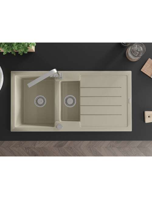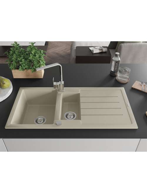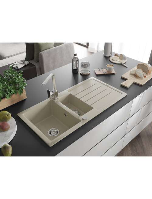 Mexen Andres zlewozmywak granitowy 1,5-komorowy z ociekaczem i baterią kuchenną Rita, beżowy - 6515-69-670300-00
