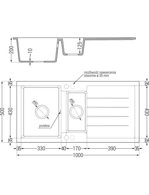Montaż: Uniwersalny, możliwość montażu z ociekaczem po lewej lub prawej stronie