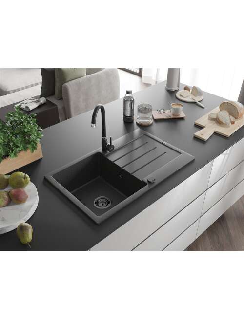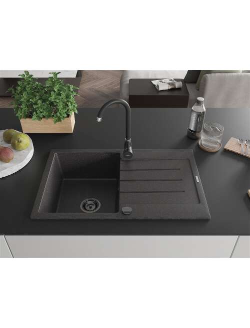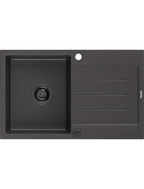 Mexen Bruno zlewozmywak granitowy 1-komorowy z ociekaczem 795 x 495 mm, czarny nakrapiany, syfon czarny - 6513791010-76-B