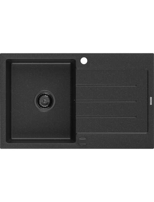 Dane techniczne: Rozmiar: 795x495x200 mm Głębokość komory: 200 mm Wymiary komory: 440x360 mm Średnica odpływu: ø90 mm Rodzaj: 1-komorowy z ociekaczem Typ: Wpuszczany w blat Materiał: Granit Kolor: Czarny/Srebrny metalik Wykończenie syfonu: Czarny Otwór przelewowy: Tak Otwór na baterie: Tak Syfon automatyczny w komplecie Wysoka odporność na zarysowania i przebarwienia Odporność na szok termiczny Powierzchnia ułatwiająca czyszczenie Dwa dodatkowe podfrezowane otwory do samodzielnego wybicia ø35 |