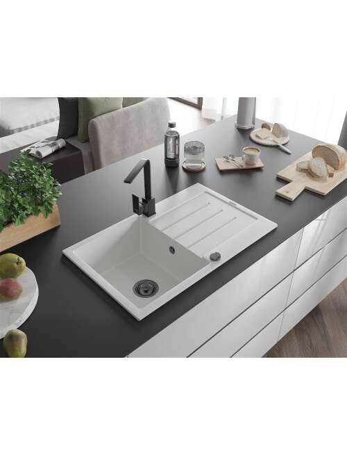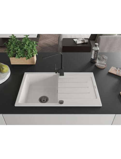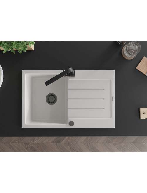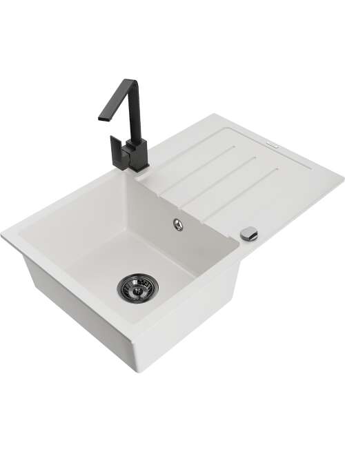 Dane techniczne: Zlewozmywak: Rozmiar: 795x495x200 mm Głębokość komory: 200 mm Wymiary komory: 440x360 mm Średnica odpływu: ø90 mm Typ: 1-komorowy z ociekaczem Rodzaj: Wpuszczany w blat Kolor: Biały Wykończenie syfonu: Czarny Materiał: Granit (80% kruszywo granitowe 20% żywice) Otwór przelewowy: Tak Otwory: ( bateria, automat ) 2 Montaż: Uniwersalny, możliwość montażu z ociekaczem po lewej lub prawej stronie Wysoka odporność na zarysowania i przebarwienia Odporność na szok termiczny Powierzchnia ułatwiająca czyszczenie Dwa dodatkowe podfrezowane otwory do samodzielnego wybicia ø35 Bateria kuchenna: Materiał: Mosiądz Kolor: Czarny Głowica: Ceramiczna Perlator: Tak Typ: Jednouchwytowa Wysokość baterii: 290 mm Zasięg wylewki: 220 mm |