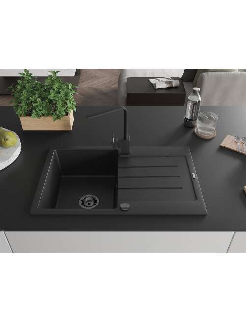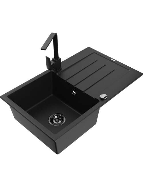 Dane techniczne: Zlewozmywak: Rozmiar: 795x495x200 mm Głębokość komory: 200 mm Wymiary komory: 440x360 mm Średnica odpływu: ø90 mm Typ: 1-komorowy z ociekaczem Rodzaj: Wpuszczany w blat Kolor: Czarny Wykończenie syfonu: Czarny Materiał: Granit (80% kruszywo granitowe 20% żywice) Otwór przelewowy: Tak Otwory: ( bateria, automat ) 2 Montaż: Uniwersalny, możliwość montażu z ociekaczem po lewej lub prawej stronie Wysoka odporność na zarysowania i przebarwienia Odporność na szok termiczny Powierzchnia ułatwiająca czyszczenie Dwa dodatkowe podfrezowane otwory do samodzielnego wybicia ø35 Bateria kuchenna: Materiał: Mosiądz Kolor: Czarny Głowica: Ceramiczna Perlator: Tak Typ: Jednouchwytowa Wysokość baterii: 290 mm Zasięg wylewki: 220 mm |