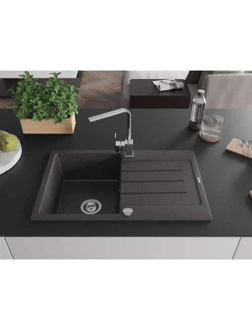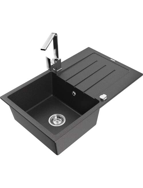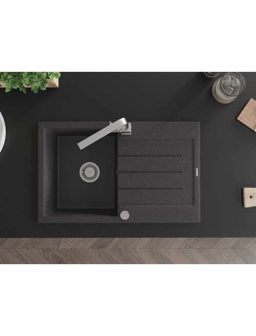 Mexen Bruno zlewozmywak granitowy 1-komorowy z ociekaczem i baterią kuchenną Rita, czarny nakrapiany - 6513-76-670300-00