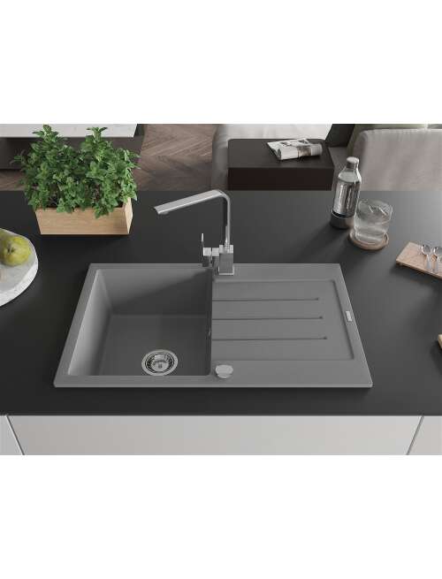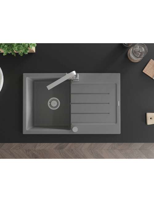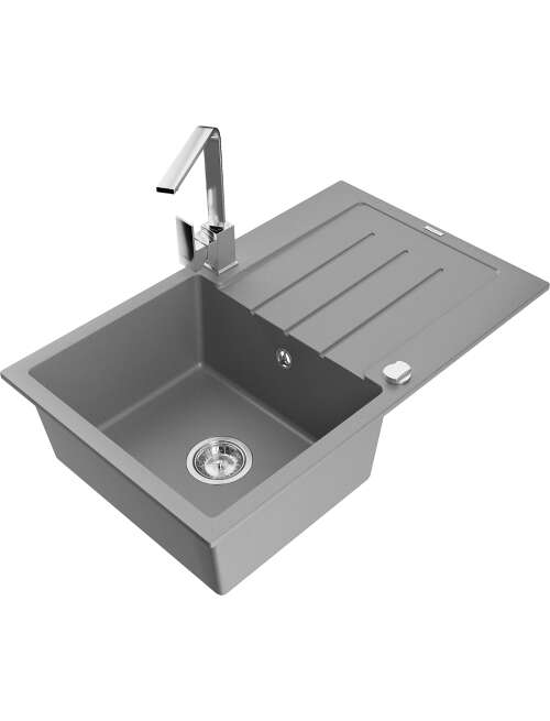 Dane techniczne: Zlewozmywak: Rozmiar: 795x495x200 mm Głębokość komory: 200 mm Wymiary komory: 440x360 mm Średnica odpływu: ø90 mm Typ: 1-komorowy z ociekaczem Rodzaj: Wpuszczany w blat Kolor: Szary Wykończenie syfonu: Chrom Materiał: Granit (80% kruszywo granitowe 20% żywice) Otwór przelewowy: Tak Otwory: ( bateria, automat ) 2 Montaż: Uniwersalny, możliwość montażu z ociekaczem po lewej lub prawej stronie Wysoka odporność na zarysowania i przebarwienia Odporność na szok termiczny Powierzchnia ułatwiająca czyszczenie Dwa dodatkowe podfrezowane otwory do samodzielnego wybicia ø35 Bateria kuchenna: Materiał: Mosiądz Kolor: Chrom Głowica: Ceramiczna Perlator: Tak Typ: Jednouchwytowa Wysokość baterii: 290 mm Zasięg wylewki: 220 mm |