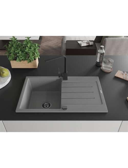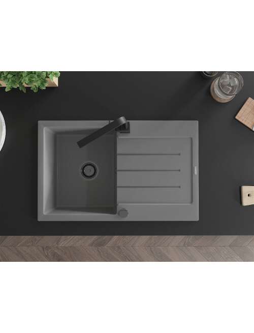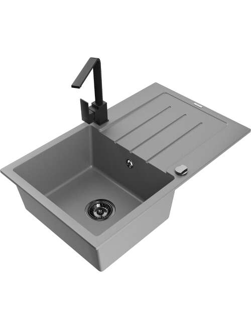 Dane techniczne: Zlewozmywak: Rozmiar: 795x495x200 mm Głębokość komory: 200 mm Wymiary komory: 440x360 mm Średnica odpływu: ø90 mm Typ: 1-komorowy z ociekaczem Rodzaj: Wpuszczany w blat Kolor: Szary Wykończenie syfonu: Czarny Materiał: Granit (80% kruszywo granitowe 20% żywice) Otwór przelewowy: Tak Otwory: ( bateria, automat ) 2 Montaż: Uniwersalny, możliwość montażu z ociekaczem po lewej lub prawej stronie Wysoka odporność na zarysowania i przebarwienia Odporność na szok termiczny Powierzchnia ułatwiająca czyszczenie Dwa dodatkowe podfrezowane otwory do samodzielnego wybicia ø35 Bateria kuchenna: Materiał: Mosiądz Kolor: Czarny Głowica: Ceramiczna Perlator: Tak Typ: Jednouchwytowa Wysokość baterii: 290 mm Zasięg wylewki: 220 mm |