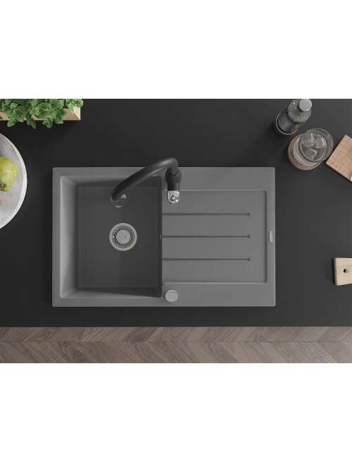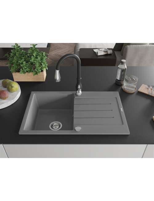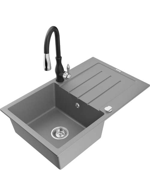 Dane techniczne: Zlewozmywak: Rozmiar: 795x495x200 mm Głębokość komory: 200 mm Wymiary komory: 440x360 mm Średnica odpływu: ø90 mm Typ: 1-komorowy z ociekaczem Rodzaj: Wpuszczany w blat Kolor: Szary Wykończenie syfonu: Chrom Materiał: Granit (80% kruszywo granitowe 20% żywice) Otwór przelewowy: Tak Otwory: ( bateria, automat ) 2 Montaż: Uniwersalny, możliwość montażu z ociekaczem po lewej lub prawej stronie Wysoka odporność na zarysowania i przebarwienia Odporność na szok termiczny Powierzchnia ułatwiająca czyszczenie Dwa dodatkowe podfrezowane otwory do samodzielnego wybicia ø35 Bateria kuchenna: Materiał: Mosiądz Kolor: Czarny Głowica: Ceramiczna Perlator: Tak Typ: Jednouchwytowa Wysokość baterii: 410 mm Zasięg wylewki: 231 mm |