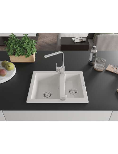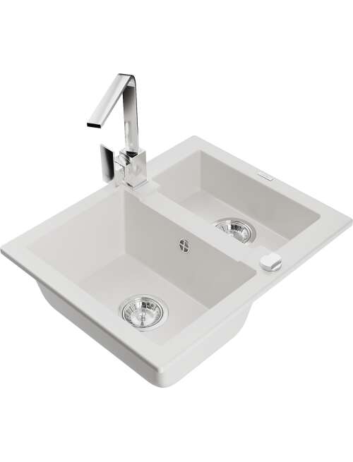 Mexen Carlos zlewozmywak granitowy 1,5-komorowy z baterią kuchenną Rita, biały - 6518-20-670300-00